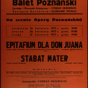 05.03.1978Afisz spektakli baletowych Polskiego Teatru Tańca Baletu Poznańskiego: Epitafium dla Don Juana oraz Stabat Mater na deskach Opery poznańskiej