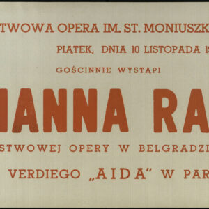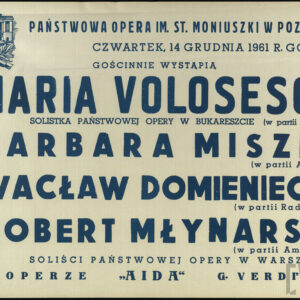 30.11.1961–03.12.1961Afisz gościnnego występu solistki Państwowej Opery w Belgradzie Marianny Radev w spektaklu operowym Aida Giuseppe Verdiego