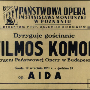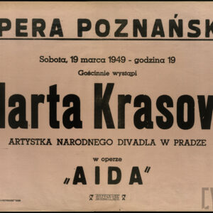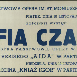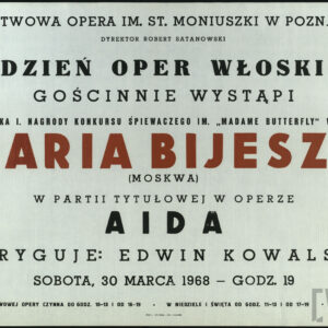 31.03.1968Afisz gościnnego występu rosyjskiej solistki Marii Bijeszu w spektaklu operowym Aida Giuseppe Verdiego pod batutą Edwina Kowalskiego