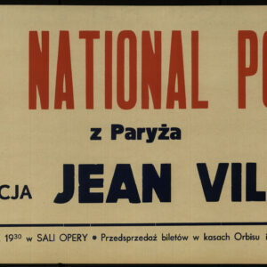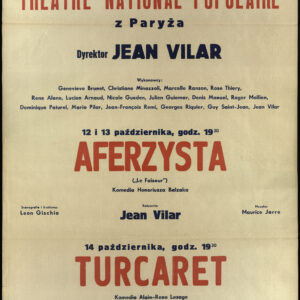 10.11.1961Afisz gościnnych występów artystów Théâtre National Populaire pod dyrekcją Jeana Vilara w spektaklach Aferzysta Honoriusza Balzaka i Turcaret Alaina-Rene Lesage