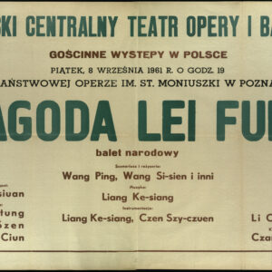 05.09.1961–06.09.1961Afisz gościnnego występu artystów Chińskiego Centralnego Teatru Opery i Baletu w spektaklu baletowym Pagoda Lei Fung na deskach Opery poznańskiej
