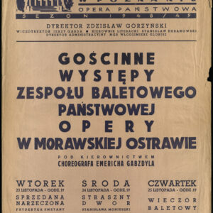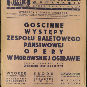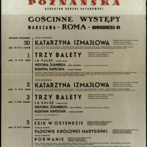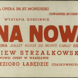09.1961Afisz gościnnego występu amerykańskiej primabaleriny Niny Nowak i solisty Państwowej Opery w Warszawie Zbigniewa Strzałkowskiego w balecie Jezioro łabędzie Piotra Czajkowskiego
