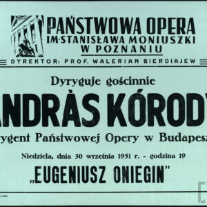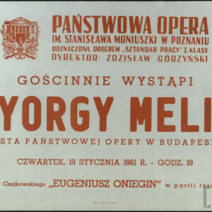 06.03.1961Afisz gościnnego występu rumuńskiego solisty György’ego Melisa w spektaklu operowym Eugeniusz Oniegin Piotra Czajkowskiego