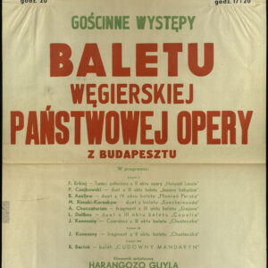 10.02.1971Afisz opery Zamek księcia Sinobrodego Béli Bartóka oraz spektakli baletowych Diverimento i Cudowny mandaryn Béli Bartóka wystawionych z okazji 25. rocznicy śmierci kompozytora pod batutą Bogdana Wodiczko