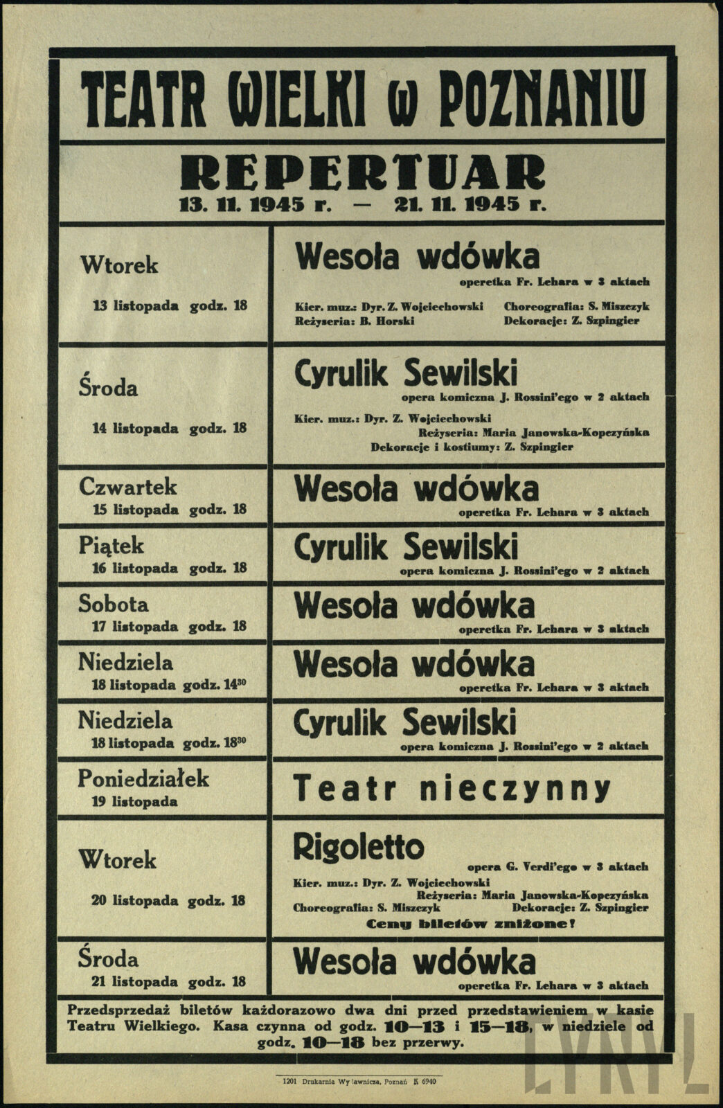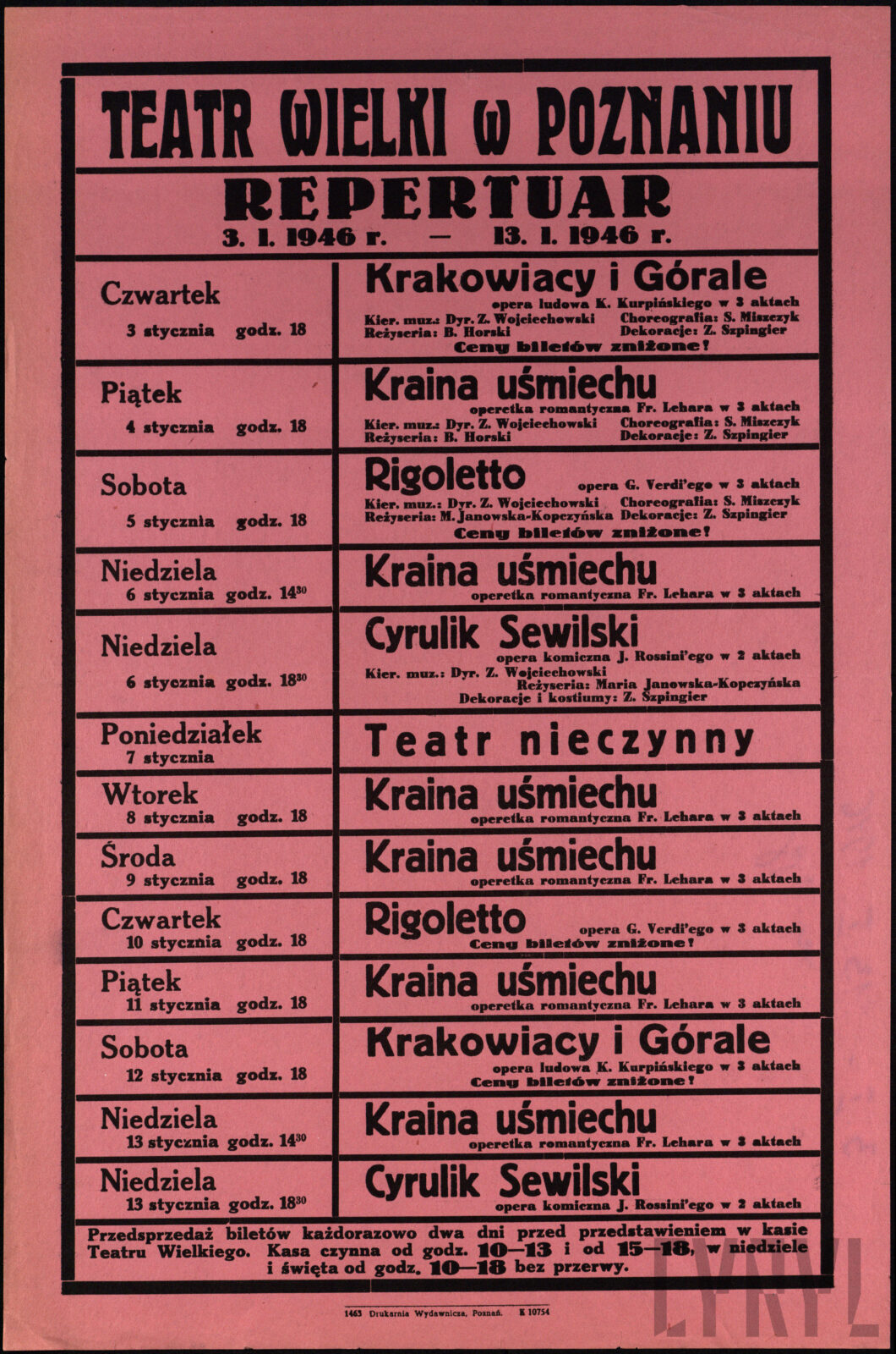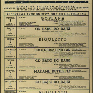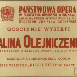 19.01.1961Afisz gościnnego występu rosyjskiej solistki Galiny Olejniczenko w spektaklu operowym Rigoletto Giuseppe Verdiego