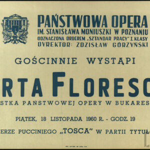05.11.1960Afisz gościnny występu rumuńskiej solistki Arty Florescu w spektaklu gościnnym Tosca Giacoma Pucciniego