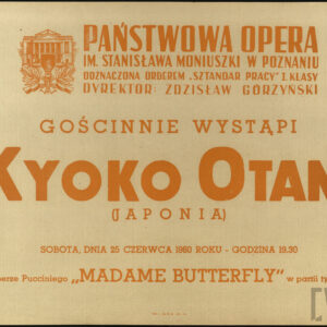 13.06.1960–15.06.1960Afisz gościnnego występu japońskiej solistki Kyoko Otani w spektaklu operowym Madame Butterfly Giacoma Pucciniego