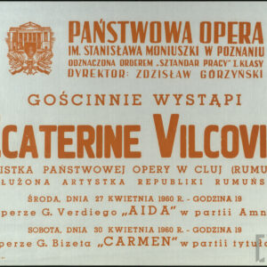 25.06.1960Afisz gościnnego występu rumuńskiej solistki Ecaterine Vilcovici w spektaklach operowych Aida Giuseppe Verdiego i Carmen Georges’a Bizeta