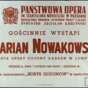 20.04.1960–24.04.1960Afisz gościnnego występu brytyjskiego solisty Mariana Nowakowskiego w spektaklu Borys Godunow Modesta Musorgskiego