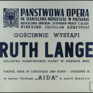 14.10.1959–18.10.1959Afisz gościnnego występu solistki Państwowej Opery w Dreźnie Ruth Lange w spektaklu operowym Aida Giuseppe Verdiego