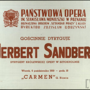 27.11.1959Afisz spektaklu operowego Carmen Georges’a Bizeta z gościnnym udziałem szwedzkiego dyrygenta Herberta Sandberga