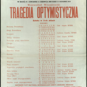 06.10.1959Afisz gościnnego występu artystów Państwowego Leningradzkiego Akademickiego Teatru Dramatycznego im. Puszkina w spektaklu Tragedia optymistyczna Wsiewołoda Wiszniewskiego