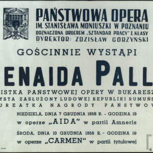 22.01.1959–24.01.1959Afisz gościnnych występów rumuńskiej solistki w spektaklach operowych Aida Giuseppe Verdiego i Carmen Georges’a Bizeta