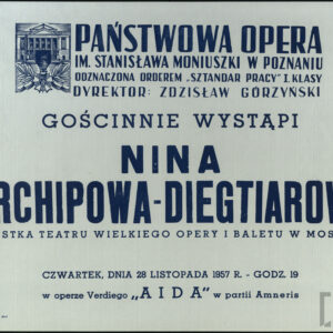 24.01.1958–26.01.1958Afisz gościnnego występu rosyjskiej solistki Niny Archipowej-Diegtiarowej w spektaklu operowym Aida Giuseppe Verdiego