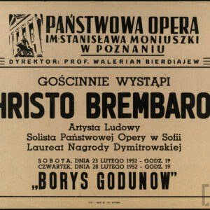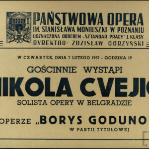 12.03.1958–20.03.1958Afisz gościnnego występu Nikolaja Cvejića w spektaklu operowym Borys Godunow Modesta Musorgskiego