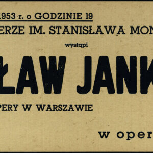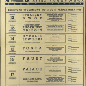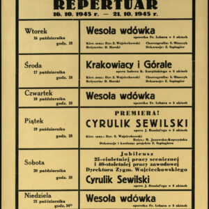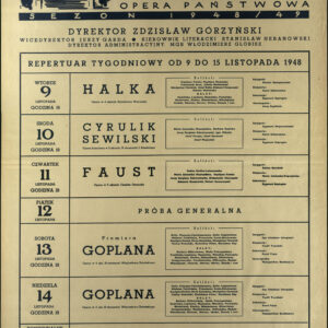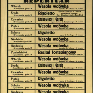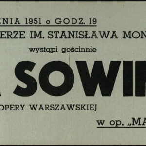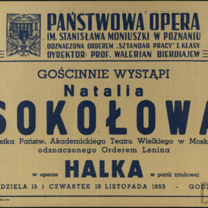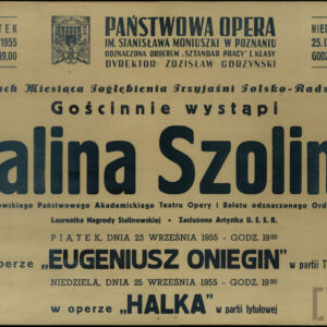 22.09.1955Afisz gościnnych występów solistki Kijowskiego Akademickiego Teatru Opery i Baletu Haliny Szoliny w spektaklach operowych Eugeniusz Oniegin Piotra Czajkowskiego i Halka Stanisława Moniuszki