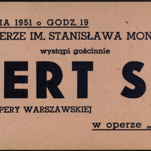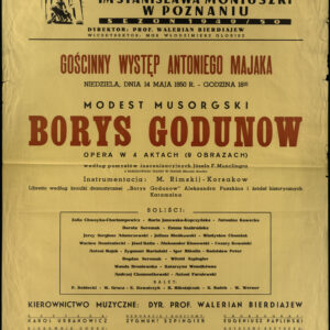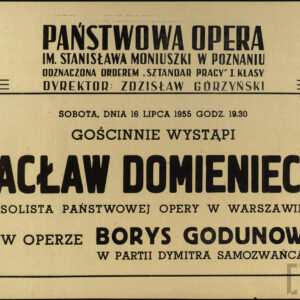 08.07.1955–13.07.1955Afisz gościnnych występów solisty Wacława Domienieckiego w spektaklu operowym Borys Godunow Modesta Musorgskiego