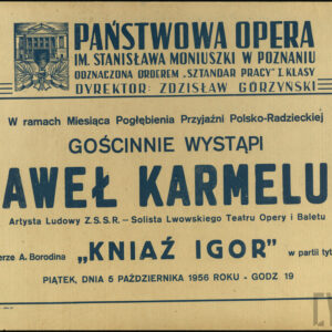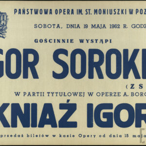 26.04.1962Afisz gościnnego występu rosyjskiego solisty Igora Sorokina w spektaklu operowym Kniaź Igor Aleksandra Borodina