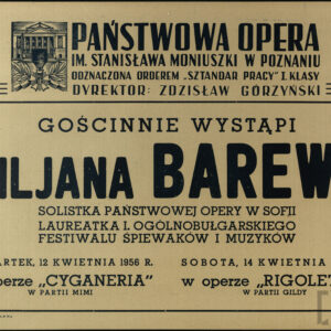 04.03.1964Afisz gościnnego występu bułgarskiej solistki Penki Marinowej w spektaklu operowym Traviata Giuseppe Verdiego
