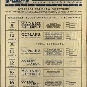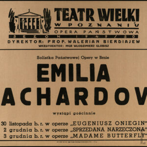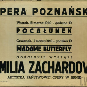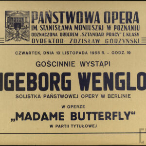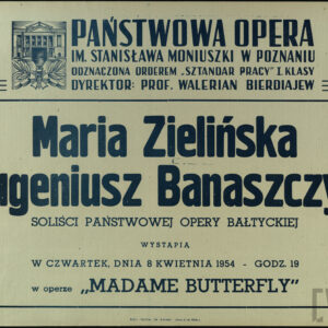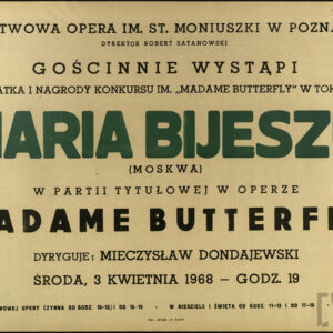 26.04.1968Afisz gościnnego występu rosyjskiej solistki Marii Bijeszu w spektaklu operowym Madame Butterfly Giacoma Pucciniego pod batutą Mieczysława Dondajeskiego