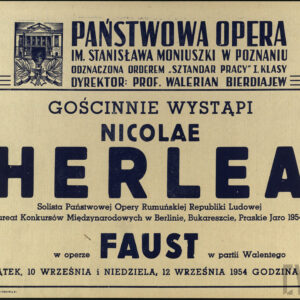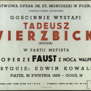 23.05.1968–28.05.1968Afisz gościnnego występu Tadeusza Wierzbickiego w spektaklu operowym Faust z Nocą Walpurgii Charles’a Gounoda pod batutą Edwina Kowalskiego