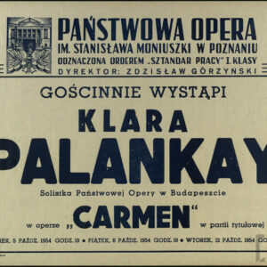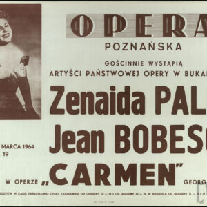 20.03.1964–22.03.1964Afisz gościnnego występu rumuńskiej artystki Zenaidy Pally w spektaklu Carmen Georges’a Bizeta pod batutą Jeana Bobescu