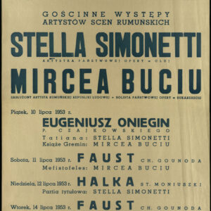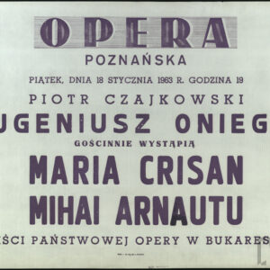 29.03.1963Afisz gościnnego występu rumuńskich artystów Marii Crisan i Mihaia Arnauta w spektaklu operowym Eugeniusz Oniegin Piotra Czajkowskiego