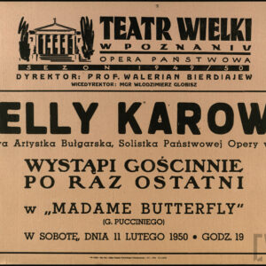 30.10.1954–05.11.1954Afisz gościnnego występu bułgarskiej solistki Nelly Karowej, która ostatni raz wystąpi w operze Madame Butterfly Giacoma Pucciniego
