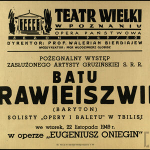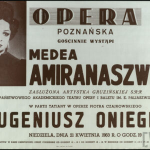 17.05.1963Afisz gościnnego występu gruzińskiej solistki Medey Amiranaszwili w spektaklu operowym Eugeniusz Oniegin Piotra Czajkowskiego
