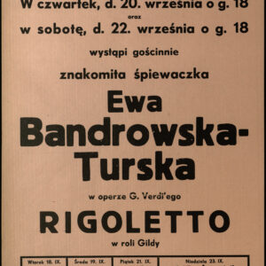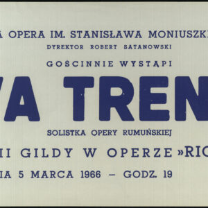 18.05.1966–20.05.1966Afisz gościnnego występu rumuńskiej solistki Evy Trenki w spektaklu operowym Rigoletto Giuseppe Verdiego