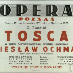 25.05.1949–27.05.1949Afisz gościnnego występu Wiesława Ochmana w spektaklu operowym Tosca Giacoma Pucciniego pod batutą Edwina Kowalskiego