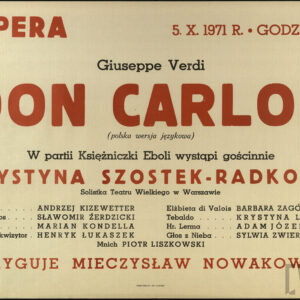 13.10.1971–15.10.1971Afisz gościnnego występu Krystyny Szostek-Radkowej w spektaklu operowym Don Carlos Giuseppe Verdiego pod batutą Mieczysława Nowakowskiego