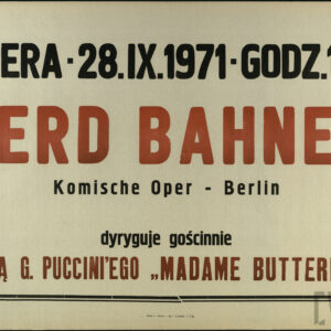05.10.1971Afisz spektaklu operowego Madame Butterfly Giacoma Pucciniego z gościnnym udziałem niemieckiego dyrygenta Gerda Bahnera