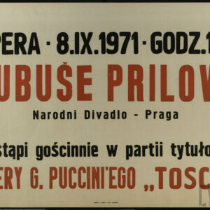 18.09.1971–19.09.1971Afisz gościnnego występu czeskiej solistki Libuše Prilovej w spektaklu operowym Tosca Giacoma Pucciniego