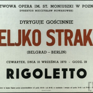 06.12.1970Afisz spektaklu operowego Rigoletto Giuseppe Verdiego z gościnnym udziałem dyrygenta Željko Straka