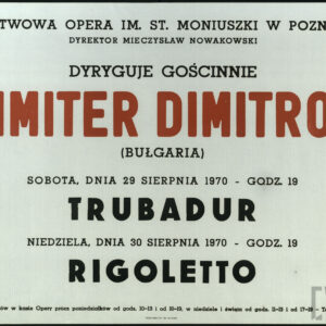 10.09.1970Afisz spektakli operowych Trubadur i Rigoletto Giuseppe Verdiego z gościnnym udziałem dyrygenta Dimitra Dimitrova