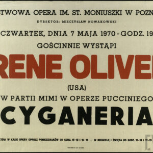 24.05.1970–27.05.1970Afisz gościnnego występu amerykańskiej solistki Irene Oliver w spektaklu operowym Cyganeria Giacoma Pucciniego