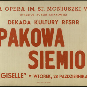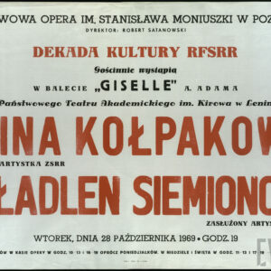 28.10.1969Afisz gościnnego występu rosyjskich solistów Iriny Kołpakowej i Władlena Siemionowa w spektaklu baletowym Giselle Adolphe’a Adama