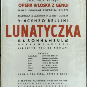 28.10.1969Afisz gościnnych występów artystów Opery Włoskiej z Genui w spektaklu Lunatyczka Vincenzo Belliniego