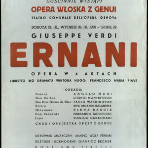 14.09.1969–17.09.1969Afisz gościnnych występów artystów Opery Włoskiej z Genui w spektaklu Ernani Giuseppe Verdiego