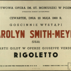 19.06.1969–21.06.1969Afisz gościnnego występu amerykańskiej solistki Carolyn Smith-Meyer w spektaklu operowym Rigoletto Giuseppe Verdiego