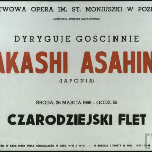 11.04.1969Afisz spektaklu operowego Czarodziejski flet Wolfganga Amadeusa Mozarta z udziałem japońskiego dyrygenta Takashiego Asahina