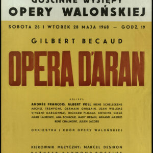 18.06.1968Afisz gościnnych występów artystów Opery walońskiej w spektaklu operowym Opéra d’Aran Gilberta Bécaud