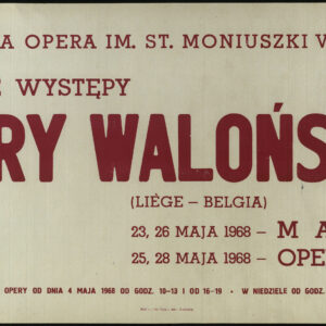23.05.1968–26.05.1968Afisz gościnnych występów artystów Opery walońskiej w spektaklach operowych Mârouf Henriego Rabauda i Opéra d’Aran Gilberta Bécauda