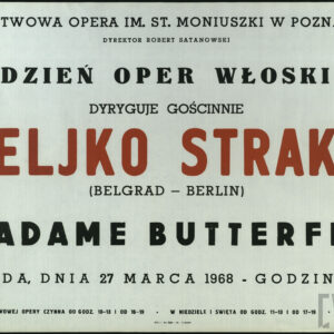 29.03.1968Afisz spektaklu operowego Madame Butterfly Giacoma Pucciniego z gościnnym udziałem dyrygenta Željko Straka