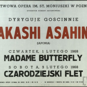 10.03.1968Afisz spektakli operowych Madame Butterfly Giacoma Pucciniego i Czarodziejski flet Wolfganga Amadeusa Mozarta pod batutą japońskiego dyrygenta Takashi Asahina