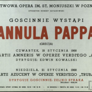 01.02.1968–03.02.1968Afisz gościnnego występu greckiej solistki Yannuli Pappas w spektaklu operowym Aida i Trubadur Giuseppe Verdiego