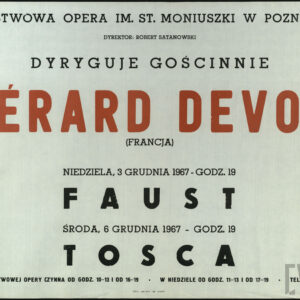 18.01.1968–21.01.1968Afisz spektakli operowych Faust Charles’a Gounoda i Tosca Giacoma Pucciniego z gościnnym udziałem dyrygenta Gérarda Devos