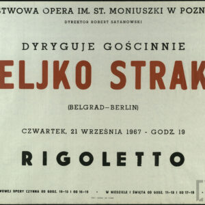 03.12.1967–06.12.1967Afisz spektaklu operowego Rigoletto Giuseppe Verdiego z gościnnym udziałem dyrygenta Željko Straka