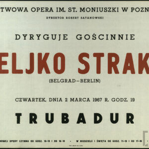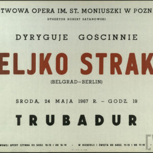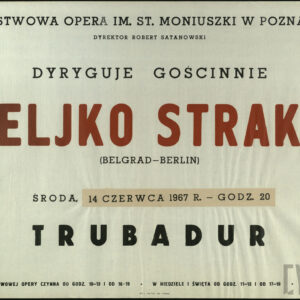 24.05.1967Afisz spektaklu operowego Trubadur Giuseppe Verdiego z gościnnym udziałem dyrygenta Željko Straka